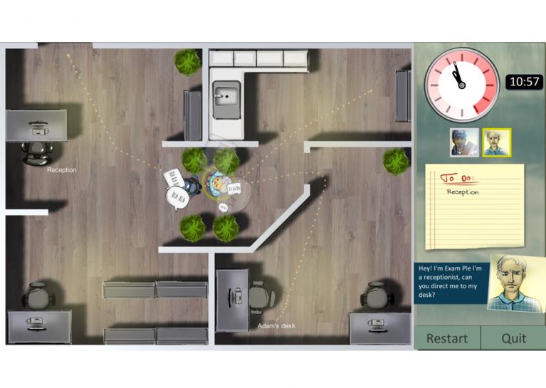 This game had quite a lot of potential, since it had the possibility to create all sorts of interesting mechanics such as picking up an iPhone that renders you immune to all sorts of pesky chit-chat. The below video shows this system in action.